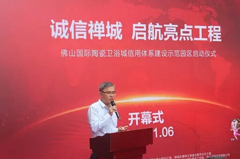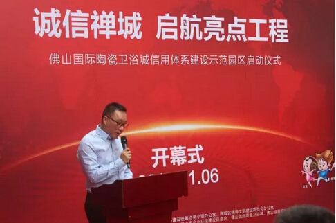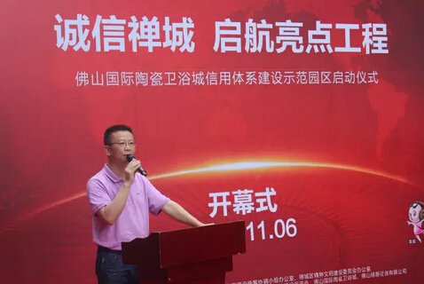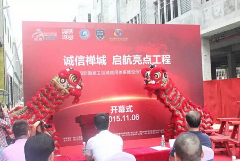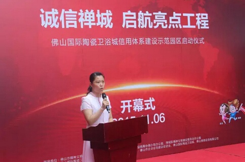 2015年11月6日,由佛山国际陶瓷卫浴城信用体系建设领导小组主办,佛山市企业征信建设促进会、佛山国际陶瓷卫浴城、佛山绿盾征信有限公司联合承办的“诚信禅城 启航亮点工程”——佛山国际陶瓷卫浴城信用体系建设示范园区启动仪式在佛山国际陶瓷卫浴城隆重召开,佛山市市县区政府相关领导以及中国信息协会信用信息专业委员会副会长、企事业征信办公室主任乔海鸿、11315佛山服务机构负责人何爱玉共同出席了此次启动仪式。
