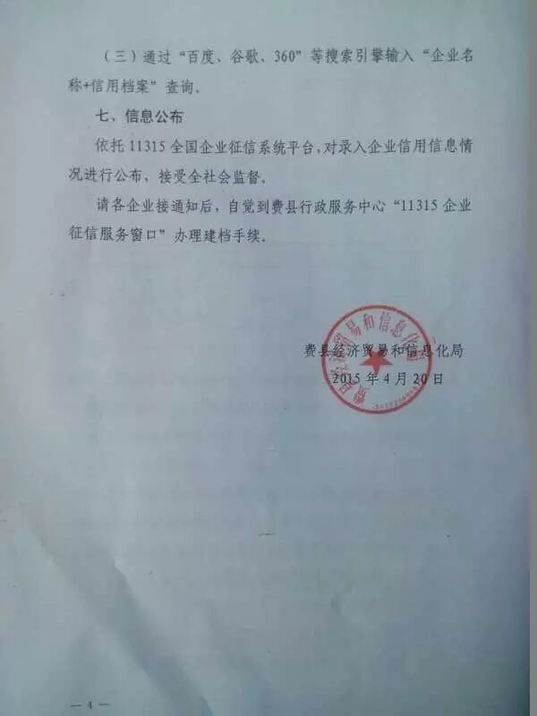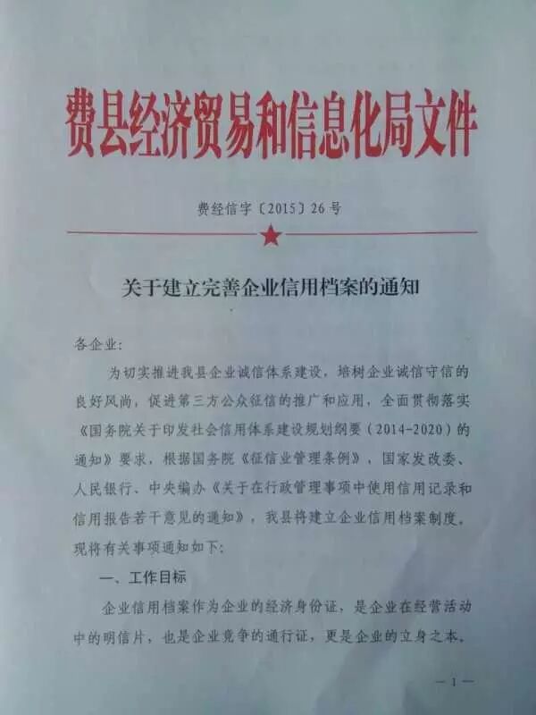 近日,山东省临沂市费县经济贸易和信息化局发布《关于建立完善企业信用档案的通知》,面向辖区内企业推广应用11315企业信用档案。